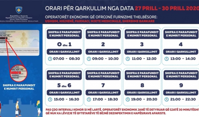 Ministarstvo zdravlja Kosova objavilo je novi raspored kretanja građana na Kosovu u vrijeme pandemije koronavirusa.