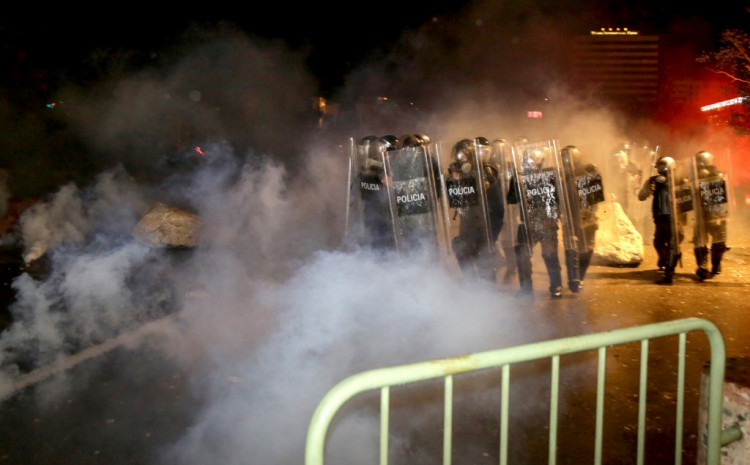 Na protestu je došlo do sukoba, a policija je upotrijebila suzavac i vodene topove kako bi rastjerala demonstrante, javlja Reuters.