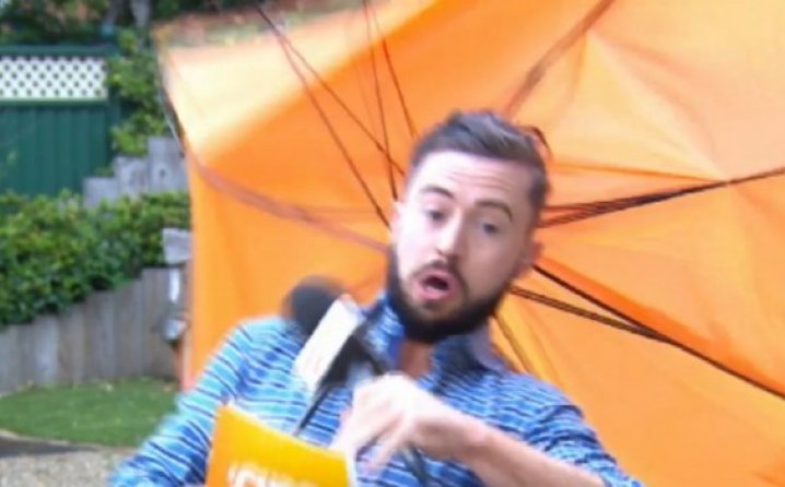 Reportera vremenske prognoze na irskoj TV 3 Derika Hartigana tokom izvještavanja vjetar je oduvao iz kadra