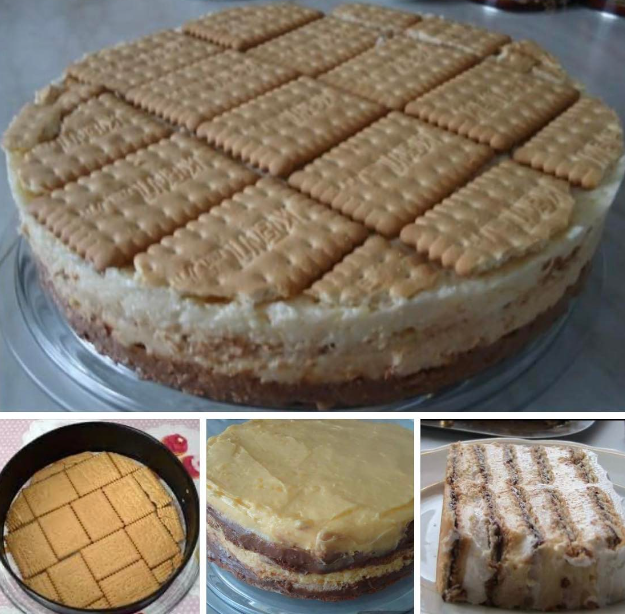 U prvi dio dodati istopljenu čokoladu i lješnjake, u drugi kokos, a u treći mljeveni keks. Slagati red keksa- fil sa čokoladom i lješnjacima, red keksa- fil sa keksom, red keksa- fil sa kokosom, red keksa- šlag ( cijeli tortu ukrasiti)..