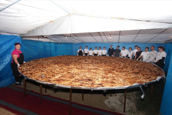 Burek teži oko 650 kilograma, što je između četiri i pet hiljada porcija, a šest sati je pripreman u lokalnom restoranu, čiji su kuhari razvili kilometar i po jufke.