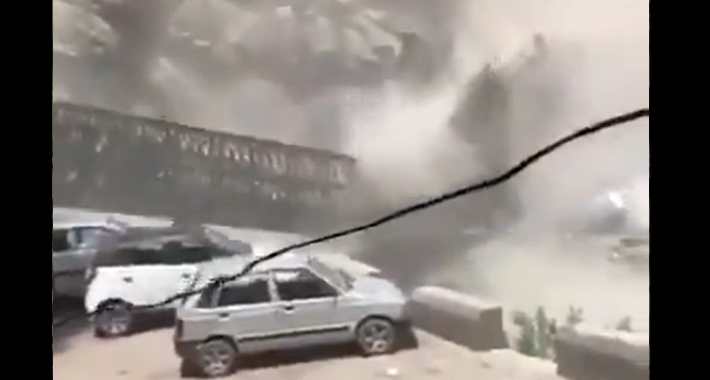 Zabilježen je zastrašujući trenutak kada su se gromade stijena srušile niz planinu i srušile u selo Chitkul pri čemu je pukao i most