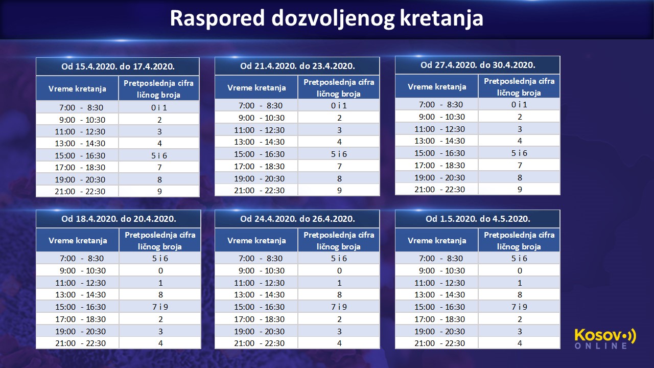 Ove mere će biti na snazi najmanje do 4. maja a u fotografiji ispod možete videti raspored.