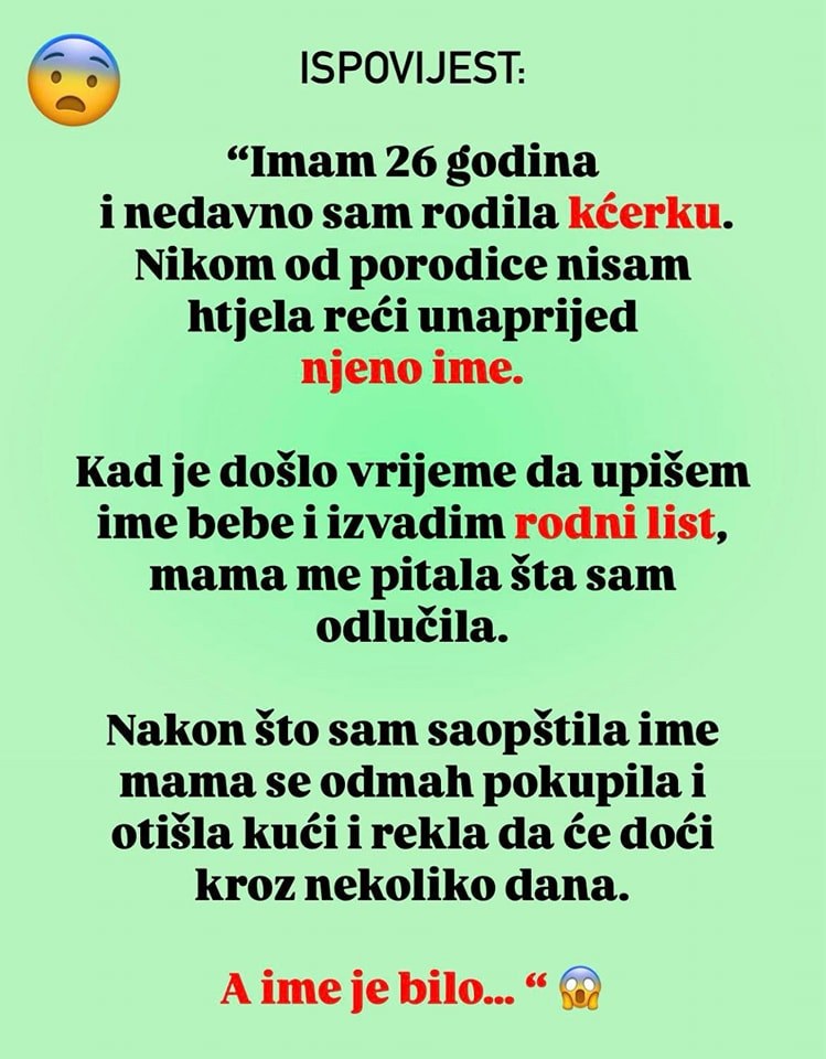 – Pokušaj staviti sebe u kožu svoje mame, zamisli da tvoj muž spava s drugom ženom, odlučiš mu oprostiti i sve je u redu, dok neko koga voliš, a bit će u njezinom životu svaki dan, nosi ime osobe koja te je uz njega povrijedila do srži. Ime će uvijek biti podsjetnik, a imati to ime sada povezano s nekim koga voliš prilično je konfliktno. © Life-is-a-beauty-Joy / Reddit