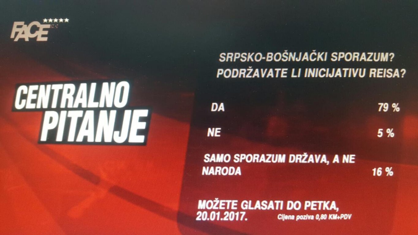 Ogromna većina gledaoca, čak njih 79 posto odgovorilo je DA podržava reisovu inicijativu, dok njih 16 posto misli da to ipak treba biti sporazum država, a ne naroda. Samo 5 posto sudionika anketa nije podržalo inicijativu Reisa Kavazovića.
