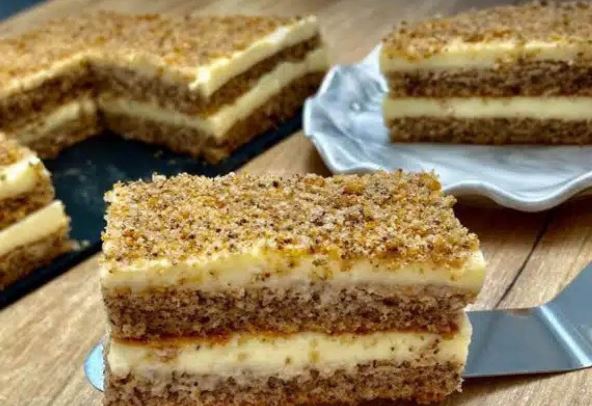 U zdjeli izmiksajte jaja, vanilin šećer, šećer, pa postupno dodajte 120 ml mlijeka i ulje. Potom dodajte prosijano glatko brašno pomiješano s praškom za pecivom pa promiješajte. Na kraju umiješajte sitno mljevene orahe. Tijesto izlijte na lim obložen papirom za pečenje i pecite u zagrijanoj pećnici na 180 stupnjeva 25 minuta. Nakon pečenja ostavite da se ohladi, odrežite rubove i podijelite tijesto na dvije polovice.