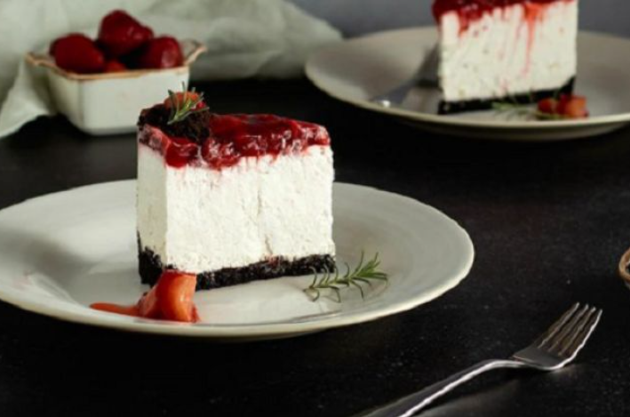 Sastojci za pripremu:150 grama mlevenog keksa;70 grama putera/maslaca;500 grama krem sira ;200 mililitara slatke pavlake ;1 pakovanje vanilin šećera;80 grama šećera u prahu;100 grama voćne marmelade ili svežeg voća