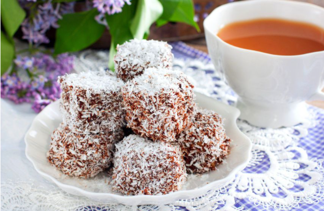 - Sada pripremite glazuru. Čokoladu razlomite na kockice, stavite je u dublju posudu, ubacite mlijeko, maslac i rum te zagrijavajte na srednje jakom vatri dok se čokolada ne otopi i poveže s ostalim sastojcima. Sada kocku po kocku nabodite na štapić za ražnjiće, umočite u glazuru i zatim uvaljajte u kokos.