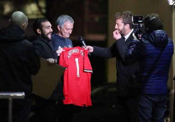 I to usred Manchestera! Novinari su ispred hotela u kojem odsjeda Special One zamolili startega Crvenih đavola da potpiše dres Uniteda. Mourinho je bio iznenađen molbom, ali je uz smiješak odlučio ispuniti želju.