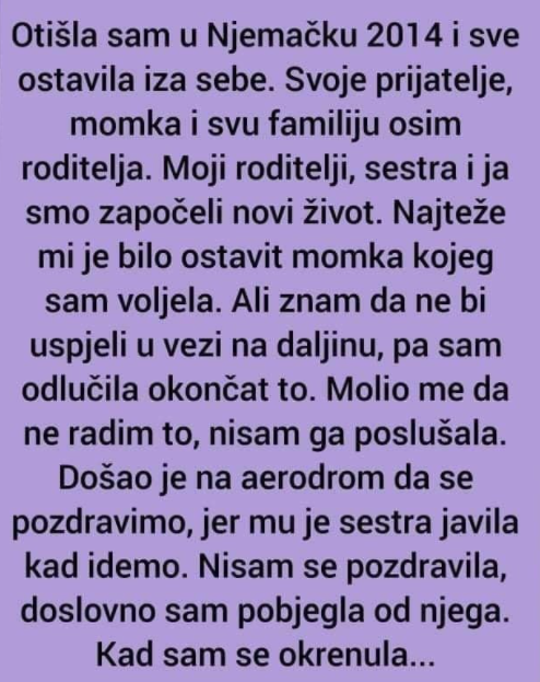 Molio me da ne radim to, nisam ga poslušala. Došao je na aerodrom da se pozdravimo, jer mu je sestra javila kad idemo. Nisam se pozdravila, doslovno sam pobjegla od njega. Kad sam se okrenula,…