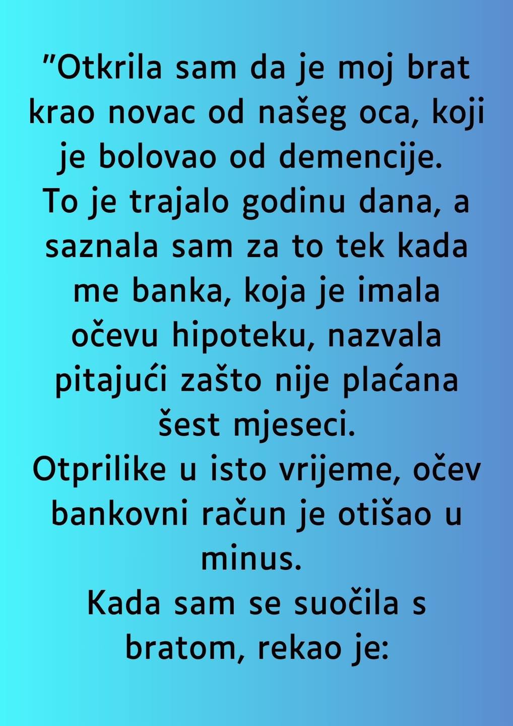 “Otkrila sam da je moj brat krao novac od našeg oca, koji je bolovao od demencije.