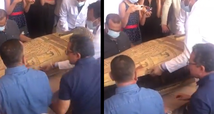 U video-snimku koji je objavio ambasador Novog Zelanda u Egiptu koji je imao čast da prisustvuje otvaranju, imate priliku da pogledate kako izgleda prava pravcata mumija iz jednog od ovih sarkofaga.