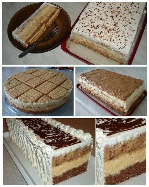 Slagati red keksa- fil sa čokoladom i lješnjacima, red keksa- fil sa keksom, red keksa- fil sa kokosom, red keksa- šlag ( cijeli tortu ukrasiti)
