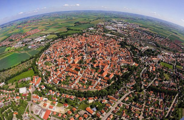 Bavarski gradić Nördlingen prvi put se pominje u devetom vijeku. Stanovnici su ga podigli unutar 26 kilometara širokog kratera ugašenog vulkana. Za izgradnju su koristili kamen iz okoline, koji im je djelovao neobično jer se pomalo presijavao.