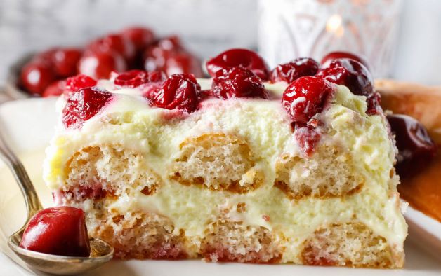 Izmiksajte margarin sa šećerom u prahu. Dodajte kiselo vrhnje i isjeckano voće. Želatinu prelijte s 4 žlice hladne vode i ostavite da nabubri. Umutite slatko vrhnje, umiješajte otopljenu želatinu i smjesu s voćem pa sve dobro sjedinite. U pravokutnoj posudi poredajte red piškota umočenih u mlijeko, premažite polovicom kreme, prekrijte redom piškota, premažite ostatkom kreme i poravnajte.