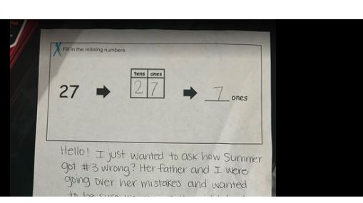 Kao što se vidi iz priloženog, ćerkica ove zabrinute mame napisala je da broj sadrži dve desetice. Zatim je dodala i da broj 27 ima sedam jedinica, a to je odgovor koj prema oceni nastavnice, nije bio tačan.