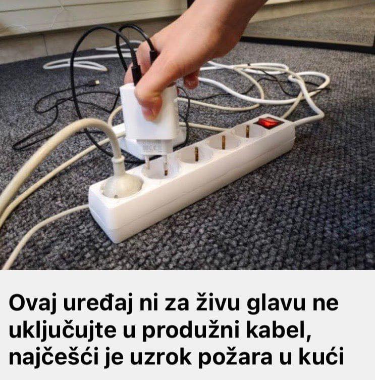 Ovaj uređaj ni za živu glavu ne uključujte u produžni kabel, najčešći je uzrok požara u kući