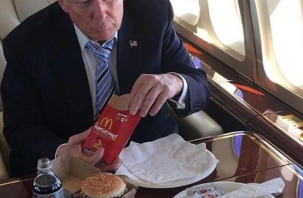 U vrijeme prošlogodišnje predsjedničke kampanje, na meniju u njegovom avionu bile su tri vrste hrane – ona iz McDonald’sa, KFC-ja i pizza.