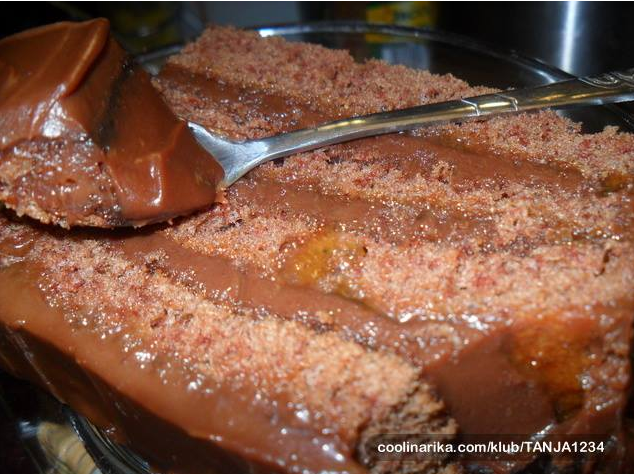 mikserom umutiti jaja sa šećerom da bude penasto, zatim dodati ostale sastojke i pomešati lagano sa kašikom ne sa mikserom, kad se sve lepo sjedini sipati u podmazan pleh i ispeći koru, ponoviti postupak još jednom.