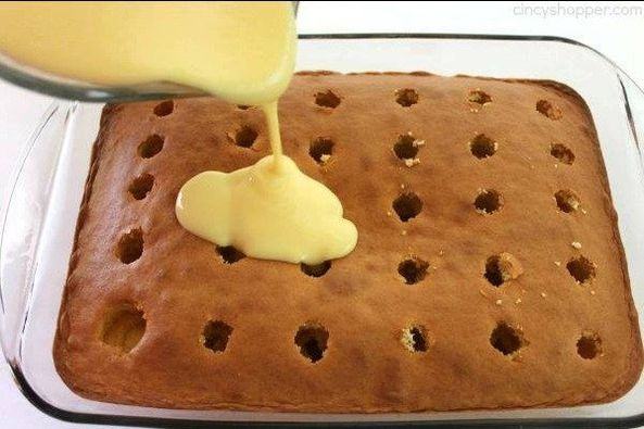 Čim biskvit izvadite iz rerne, drškom varjače ga izbodite po celoj površini, da napravite rupe.