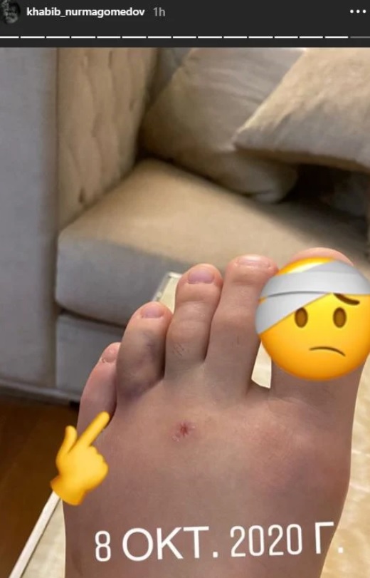 Naime, on je dvije sedmice prije meča slomio stopalo i prst na nozi, a to je uslikao kako bi mogao objaviti nakon borbe. Khabib to nije htio da spominje prije okršaja i da se eventualno “vadi” na povredu.