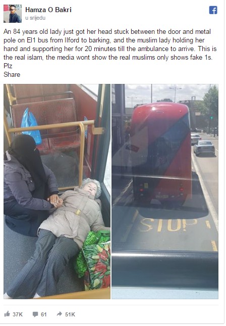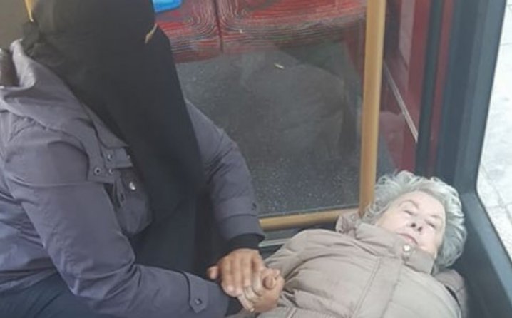 Fotografija žene u nikabu, koja kleči pored starice koja je pala u gradskom prijevozu i drži je za ruku, dodirnula je srca hiljada ljudi koji su istu podijelili na društvenim mrežema.