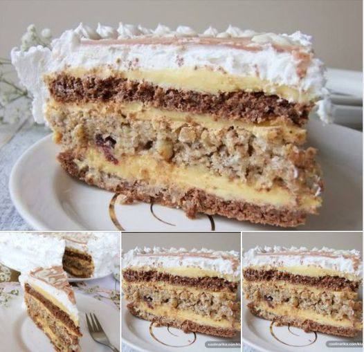 Odvojiti belanca od žumanaca. Dobro umutiti belanca dok se ne dobije čvrst sneg. U to dodajte šećer, potom žumanca. Smanjiti mikser na najmanju brzinu pa lagano, kašiku po kašiku dodati brašno, orahe i kakao.