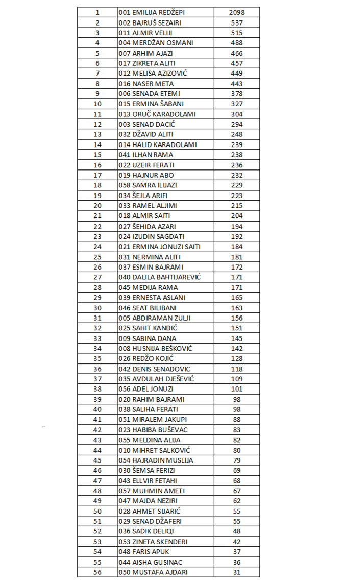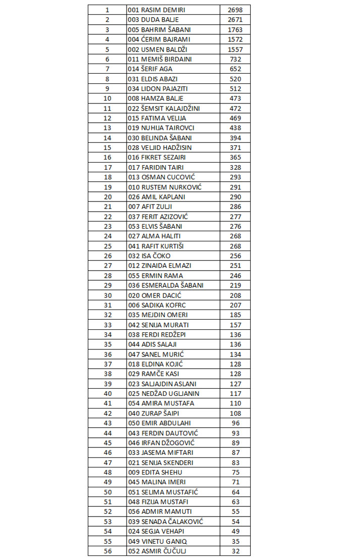 Najveći broj glasova od bošnjačkih političkih kandidata dobio je Rasim Demiri iz Koalicije Vakat, a iz Nove demokratske stranke Emilija Redžepi.