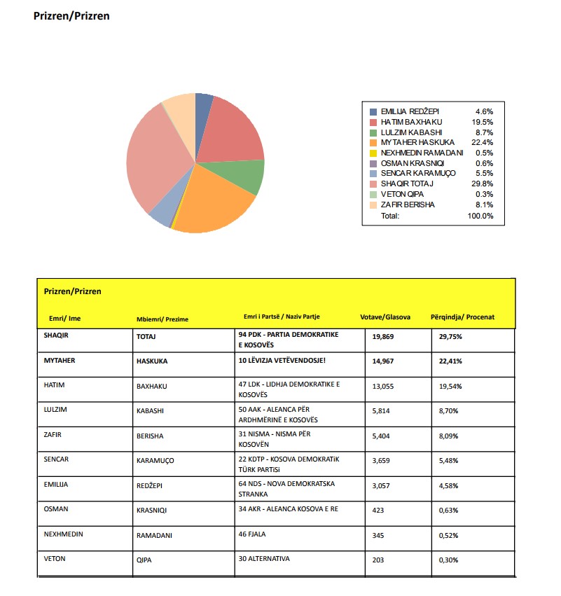 Pogledajte koliko su glasova dobili kandidati za gradonačelnika u opštini Prizren.