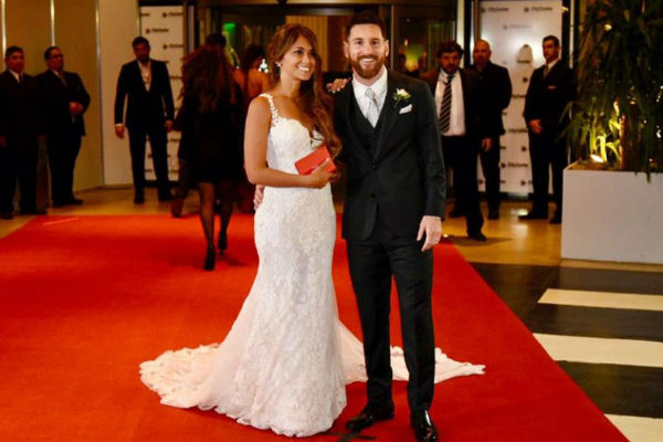 Messi je za svadbu izabrao klasično Armani odijelo, dok je njegova supruga nosila haljinu jedinstvenog dizajna sa potpisom španske firme Rosa Clara. Na haljinu punu detalja potrošeno je više od 200 sati rada, prenose španski mediji.