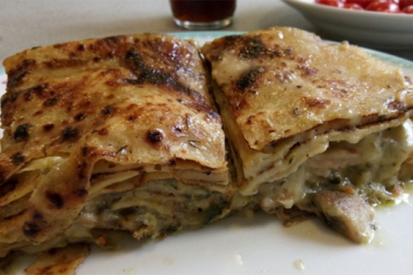 Na samom kraju, zadnji sloj palačinki pokrijte samim bešamel umakom. To je da gornji sloj palačinki ne zagori. Stavite u zagrijanu pećnicu i pecite oko 30 minuta.