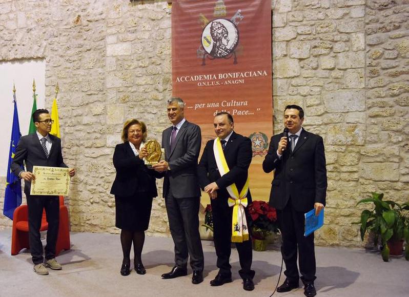 Zbog doprinosa miru Papska akademija “Accademia Bonificiana” dodjelila je predsjedniku Kosova, Hashimu Thaçiju – nagradu “Premio Bonifacio”.