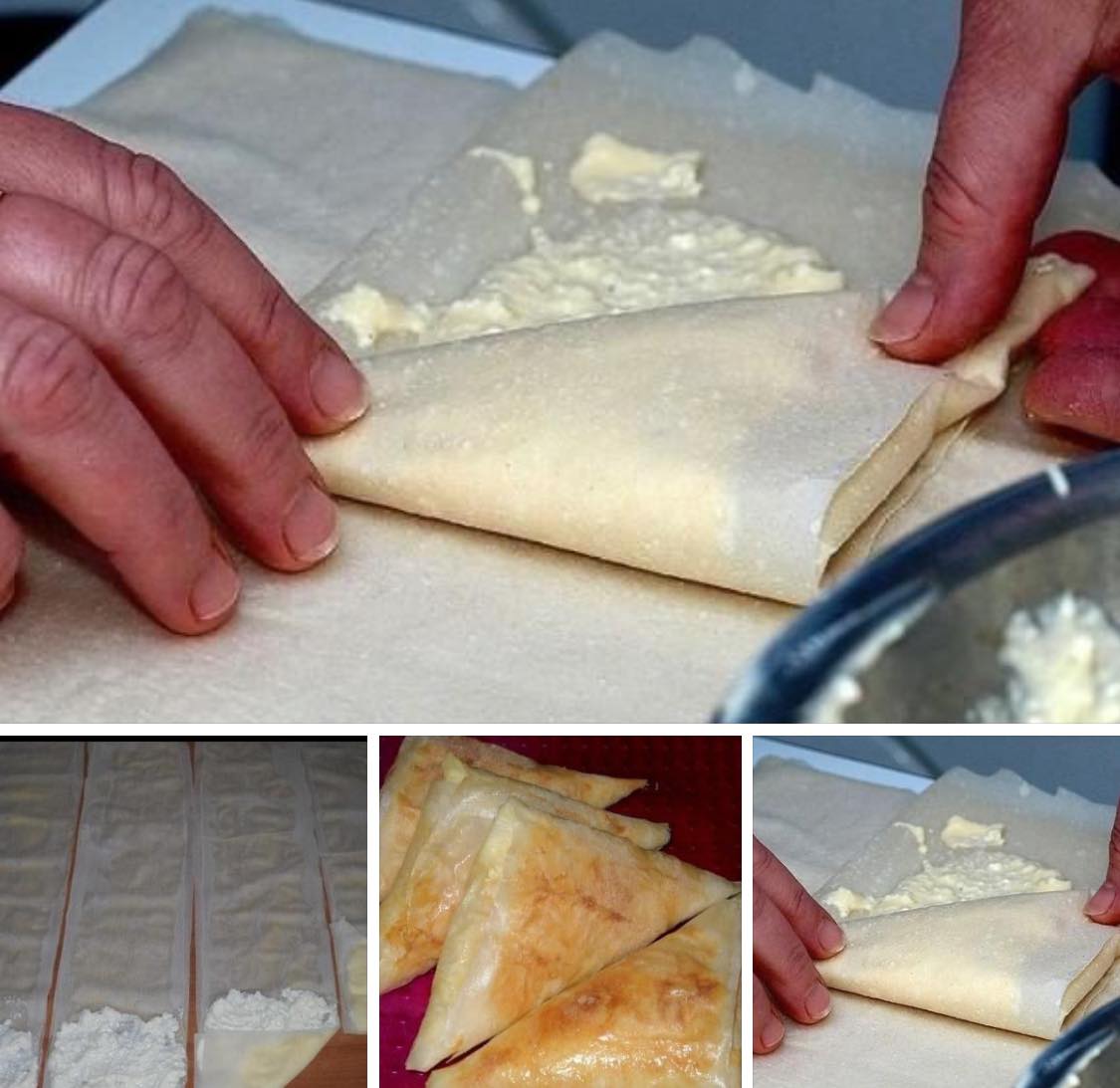 Prekriti drugom trakom.Na jedan kraj staviti 1 kašiku fila sa sirom.