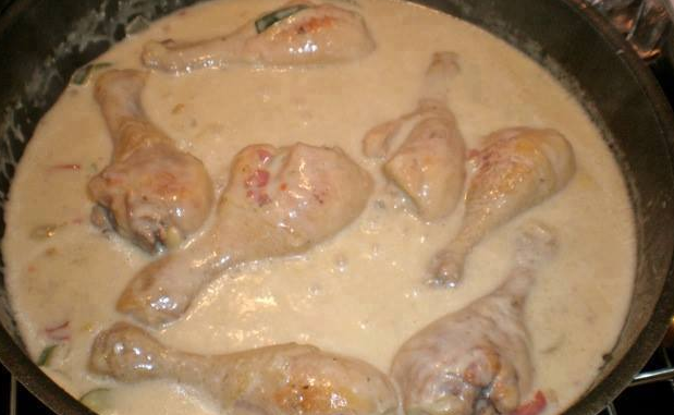 SASTOJCI:nekoliko čenova belog luka, protisnutih kroz presu,5 kašika senfa,450ml kisele pavlake,1kg pilećih bataka i karabataka,1 kašika ulja.