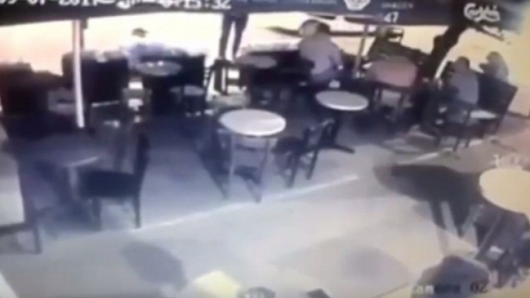 Kao što se vidi na snimci nadzorne kamere, grupa muškaraca mirno je posmatrala kako policajac pada ranjen, a kratko prije toga ispred jednog od njih vidi se bljesak.