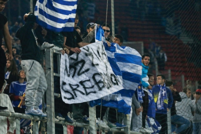 Ne po dobrome. Na tribinama gdje su bili domaći navijači grčke reprezentacije, bio je razapet transparent: „Nož, žica, Srebrenica“.