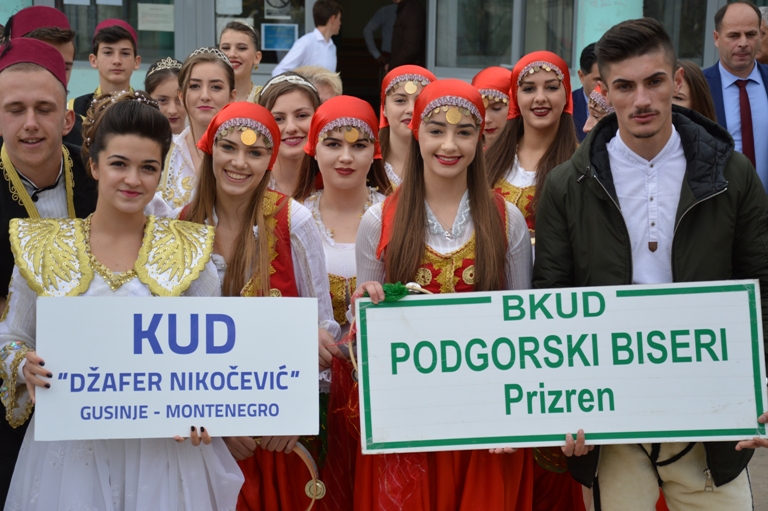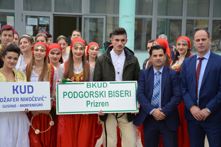Doajen bošnjačke kulture, umjetnosti i tradicije prizrenskog regiona, profesor Sadrija Bajra, je sa svojim saradnicima iz “BKED” “Mladi Talenti” te članovima i simpatizerima BKUD “Podgorski Biseri” organizirao jednovnu posjetu najmlađoj opštini u Crnoj Gori, osnovanoj 2014-te, a u pitanju je opština Gusinje, gdje su, zajeedno sa članovima KUD-a “Džafer Nikočević” organizirali zajednički folk – koncert u tamošnjem Domu kulture, koji je izazvao veliko interesovanje Gusinjana i njihovih gostiju. No, prije početka folk-koncerta, zakazanog za 14 sati, članovi (po riječima njihovih zvaničnika, sada već bratskih i prijateljskih kulturno-umjetničkih društava) prošetali su glavnom gradskom ulicom te uz pjesmu i igru kao i zastavama sa ljiljanima i kosovskom zastavom izmamili velika apluze samih građana Gusinja.