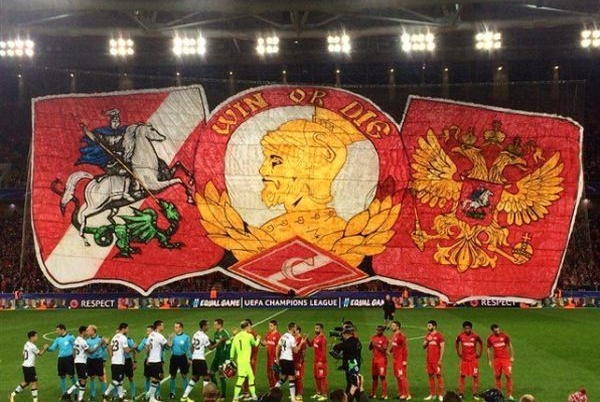 Preko cijele tribine je postavljen transparent koji se sastojao od grbova grada Moskve i Rusije, sa porukom “Pobijedi ili umri”.