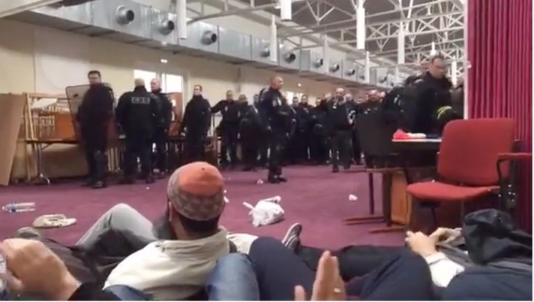 Kao što se vidi na snimku, vjernici nisu pristali na zatvaranje džamije, pružili su pasivni otpor.
