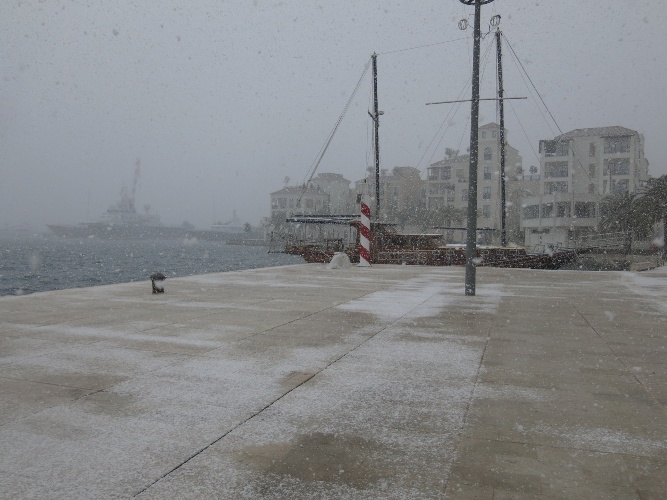Prvo je počelo da sniježi u Spiču-Sutomoru, Brci, Maljeviku, Đurmanima, da bi potom sniježne pahulje počele da provijavaju i u strogom barskom gradskom jezgru.
