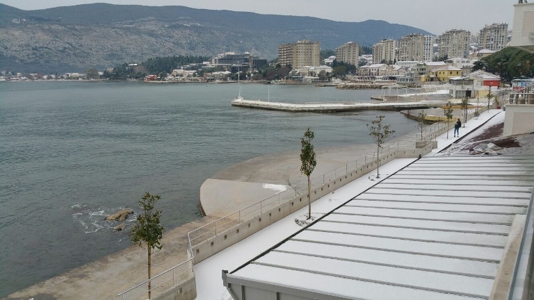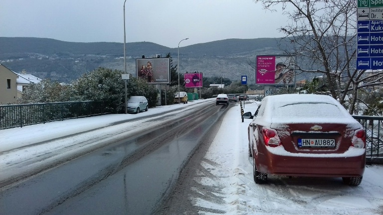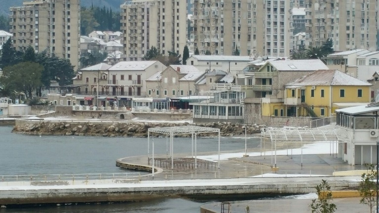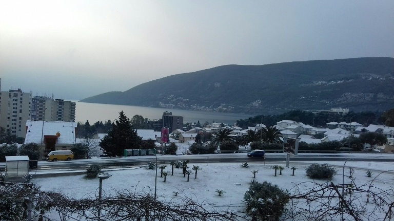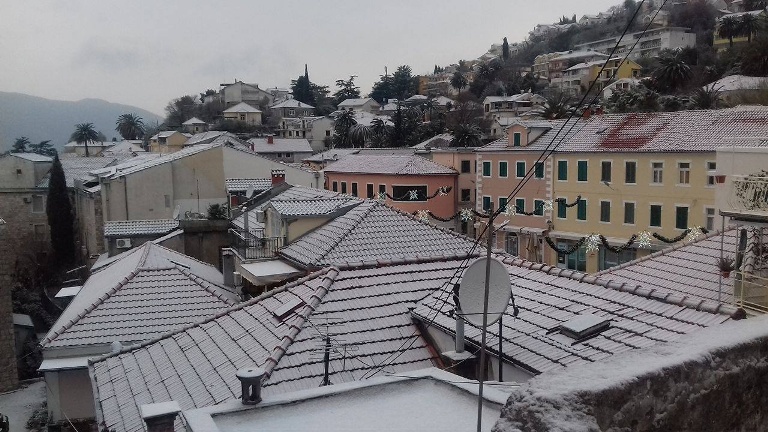 Crnogorsko primorje jutros je osvanulu pod snijegom. Snijeg je najviše okopnio u Herceg Novom i Baru, gdje ga je bilo pet centimetara.
