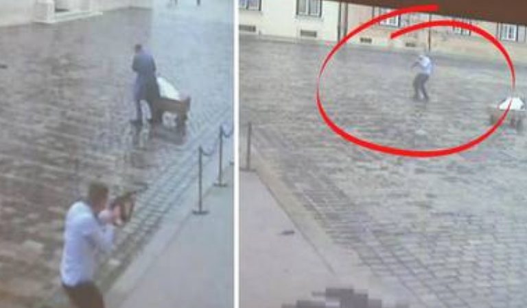 Na početku konferencije za medije prikazali su snimak napada na kojem se vidi 22-godišnji napadač kako dotrčava pred zgradu Vlade, s puškom i otvara paljbu. U tom trenutku je ispred Vlade bio policajac, ali i dostavljač koji je jedva izbjegao rafal.