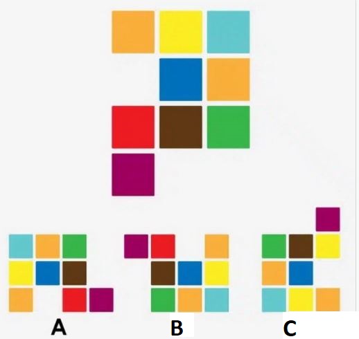 Pred vama su tri šarene figure, označene A, B i C. Dobro ih pogledajte i pokušajte da saznate koja od njih je “uljez” i to za samo 30 sekundi!