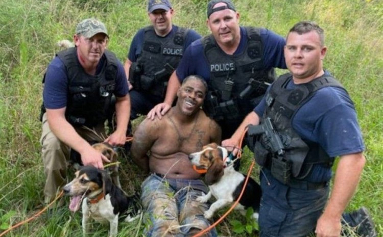 Četvorica policajaca izazvala su bijes javnosti nakon što su pozirali sa nasmijanim osumnjičenim za pljačku banke, koji je bio u lisicama i bez majice, nakon velike potjere u Misisipiju.