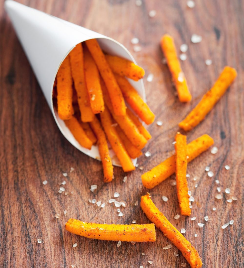 Bundevu prepolovite i iz nje izvadite sjemenke i ogulite koru, a zatim je narežite na deblje trake poput pomfrita. Trake stavite u zdjelu i na njih nanesite maslinovo ulje i začine. Rukama ih promiješajte kako bi se po njima začini ravnomjerno rasporedili.