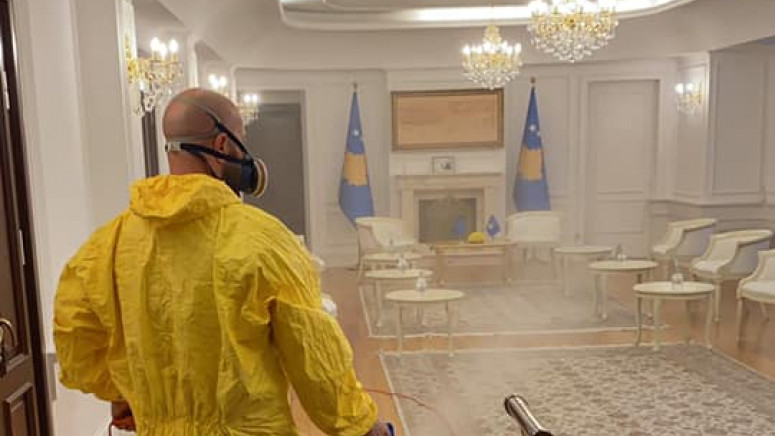 Posle sastanka predsednika Hašima Tačija sa izaslanikom EU Miroslavom Lajčakom, Tačijeve kancelarije su dezinfikovane u sklopu mera protiv epidemije koronavirusa.