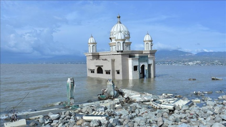Džamija “Erkam Bab El Rahman”, izgrađena na samoj obali, nakon zemljotresa i cunamija, nalazi se u vodi. Zbog toga je dobila naziv “plutajuća džamija”. Naryo Yatemo, jedan od mještana, ispričao je da džamija nije srušena u zemljotresu, kao većina objekata ali cunami ju je povukao u more. Potresni snimci iz Palua pokazuju srušene i poplavljene objekte. Snimak nepoznatog autora pokazuje strašne prizore i cunami, koji je pokrenut nakon zemljotresa. Vidi se i pronalazak jednog tijela, tokom potrage spasilačkih ekipa.