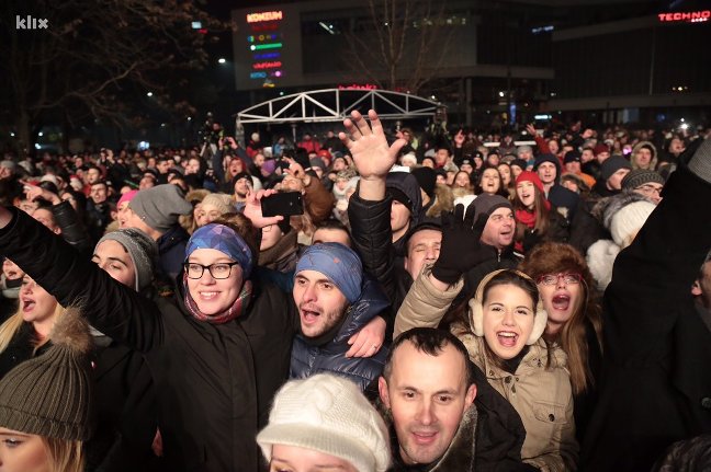 Na javnom dočeku Nove godine u Sarajevu na Trgu BiH publika je skoro jednoglasno sa zvijezdom večeri Dinom Merlinom pjevala “Ja potpuno trijezan umirem”.