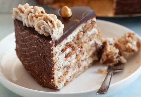 Priprema: Na slabijoj vatri karamelizujte šest kašika šećera, prelijte šoljom vode i kuvajte dok se karamel ne istopi. Sklonite s vatre i u prohlađeno dodajte seckane orahe, 250 grama šećera i ulje. Sipajte brašna koliko je potrebno da dobijete testo srednje gustine. Dodajte prašak za pecivo, dobro izmešajte i testo podelite na dva dela.U podmazanom i brašnom posutom kalupu ispecite dve kore.