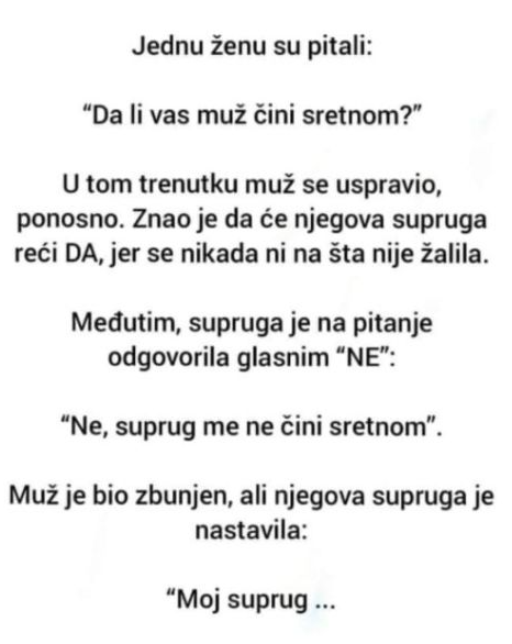 U tom trenutku muž se uspravio, ponosno. Znao je da će njegova supruga reći DA, jer se nikada ni na šta nije žalila.